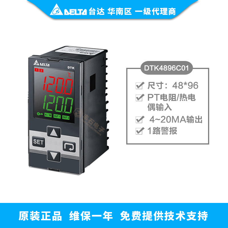 臺(tái)達(dá)智能溫度控制器 DTK4896C01 參數(shù):高亮 LCD顯示,48*96,Pt電阻/熱電偶輸入, 4~20mA輸出, 1路警報(bào)