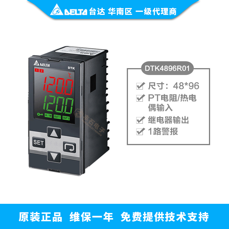 臺達智能溫度控制器 DTK4896R01 參數(shù):高亮 LCD顯示,48*96,Pt電阻/熱電偶輸入, 繼電器輸出,1路警報